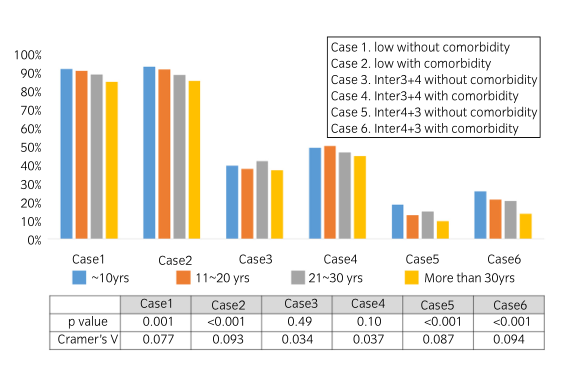 研究包括922家日本醫(yī)院,調(diào)查的項(xiàng)目有泌尿科醫(yī)生的職業(yè)年齡、性別、工作地點(diǎn)、擁有的治療設(shè)備、日常工作的專業(yè)領(lǐng)域、泌尿科癌癥的專業(yè)領(lǐng)域,以及六個(gè)假設(shè)的AS病例。這些病例按Gleason評(píng)分進(jìn)行分類:3+3低風(fēng)險(xiǎn)PCa,3+4中風(fēng)險(xiǎn)PCa,以及4+3中風(fēng)險(xiǎn)PCa,每個(gè)病例有或沒有合并癥。并發(fā)癥定義為心血管疾病或需要抗凝血治療的疾病。