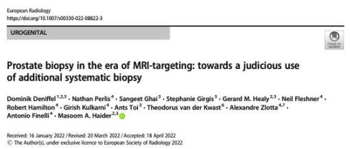 Dominik Deniffel,Nathan Perlis,Sangeet Ghai,et al.Prostate biopsy in the era of MRI-targeting: towards a judicious use of additional systematic biopsy.DOI:10.1007/s00330-022-08822-3