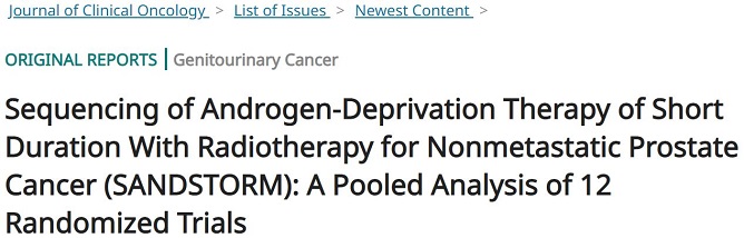 Ting Martin Ma, et al. Sequencing of Androgen-Deprivation Therapy of Short Duration With Radiotherapy for Nonmetastatic Prostate Cancer (SANDSTORM): A Pooled Analysis of 12 Randomized Trials. Journal of Clinical Oncology. October 21, 2022. https://ascopubs.org/doi/full/10.1200/JCO.22.00970