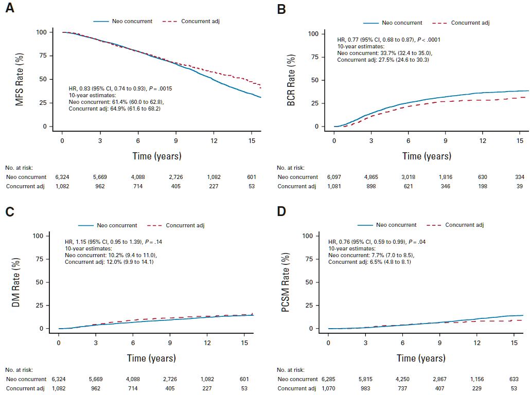 但是,在接受WPRT的患者(n=3049)中,除了同步/輔助ADT治療的遠處轉移發生率更高(HR 1.57,p=0.0009)之外,在其他任何終點均未觀察到ADT順序的顯著差異。