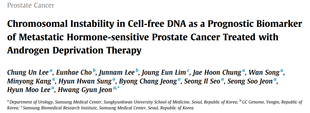 Chung Un Lee, Eunhae Cho, Junnam Lee et al. Chromosomal Instability in Cell-free DNA as a Prognostic Biomarker of Metastatic Hormone-sensitive Prostate Cancer Treated with Androgen Deprivation Therapy. Eur Urol Focus. Sep 2022