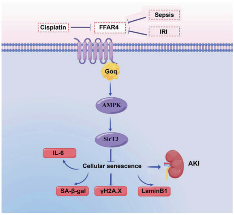 Letian Yang et al. FFAR4 improves the senescence of tubular epithelial cells by AMPK/SirT3 signaling in acute kidney injury. Signal Transduct Target Ther. 2022 Nov 30;7(1):384. doi: 10.1038/s41392-022-01254-x.