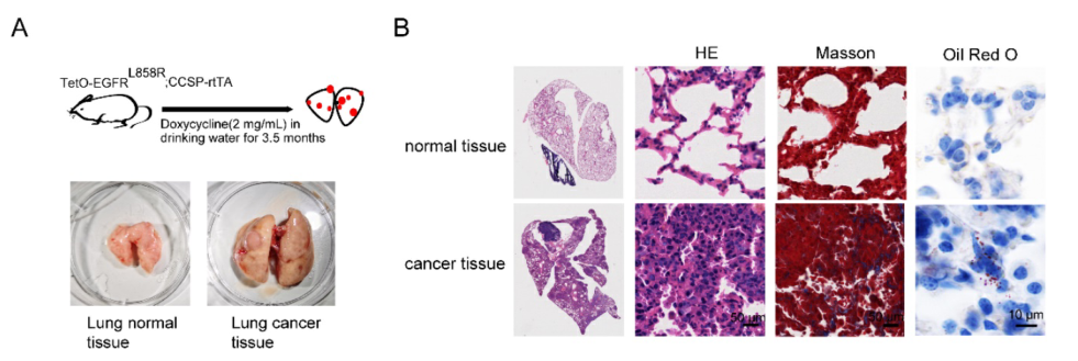研究者采用TETO-EGFRL858R;CCSP-RTTA轉基因小鼠模型建立自發性肺腫瘤模型,觀察LDS在CAF中的蓄積。用小鼠成纖維細胞系體外研究LDS積聚對成纖維細胞表型變化的影響。另外,研究者采用RNA測序、Western blotting、RT-PCR和DNA下拉等方法研究成纖維細胞LDS合成的機制。
