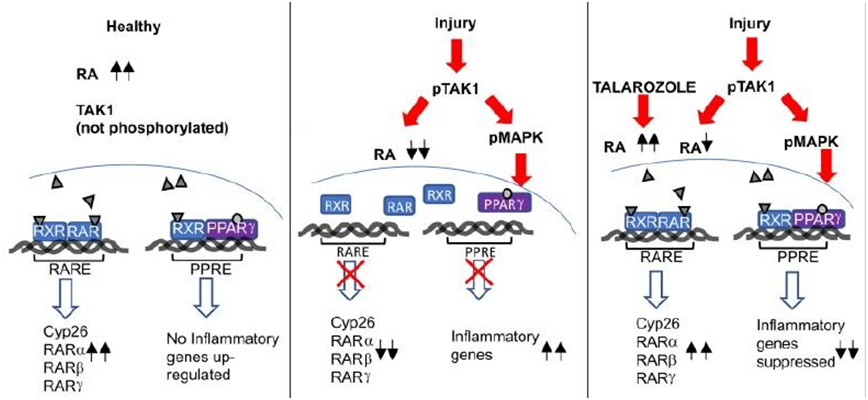 圖示軟骨損傷后全反式視黃酸(atRA)的抗炎作用。圖片來自Science Translational Medicine, 2022, doi:10.1126/scitranslmed.abm4054。