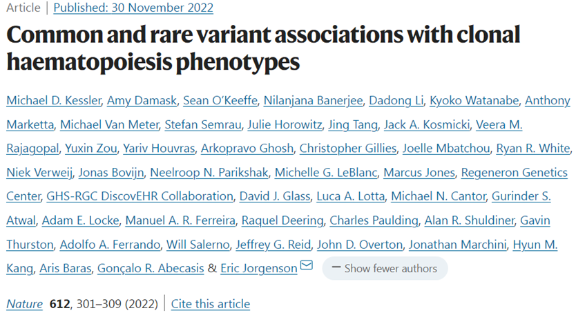 Michael D. Kessler et al. Common and rare variant associations with clonal haematopoiesis phenotypes. Nature, 2022, doi:10.1038/s41586-022-05448-9.