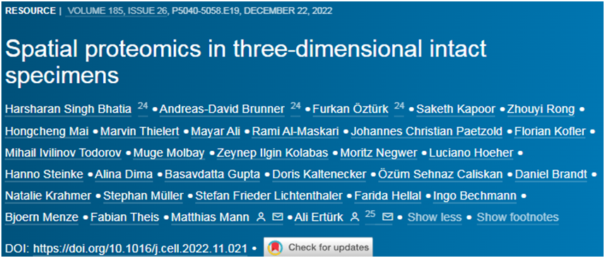 1. Harsharan Singh Bhatia et al. Spatial proteomics in three-dimensional intact specimens. Cell, 2022, doi:10.1016/j.cell.2022.11.021.
