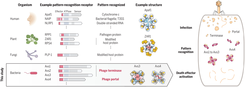 原核生物NLR樣防御蛋白的機制與結構。圖片來自Science, 2022, doi:10.1126/science.abm4096。