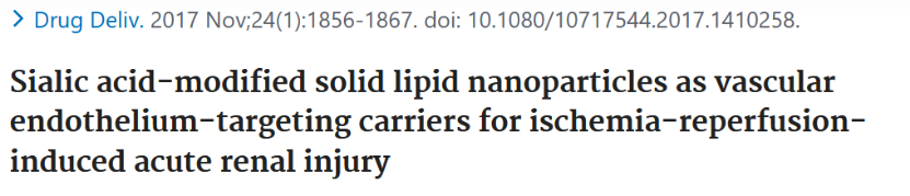 Top5. 唾液酸修飾的固體脂質納米顆粒作為缺血再灌注誘導的急性腎損傷的血管內皮靶向載體