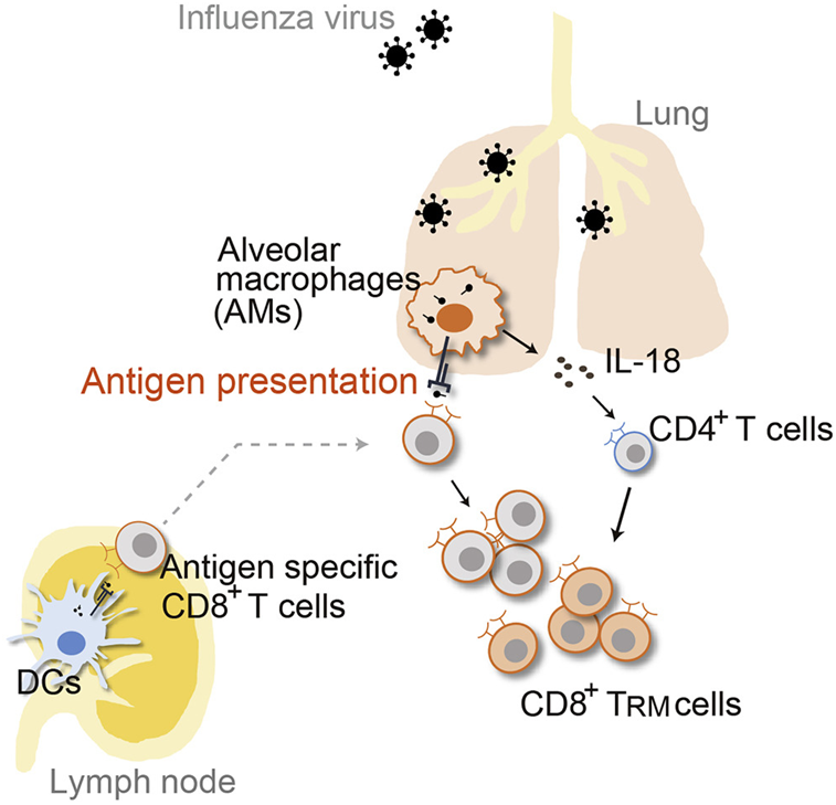此外,這些作者發(fā)現(xiàn),肺泡巨噬細(xì)胞通過(guò)產(chǎn)生白細(xì)胞介素18(IL-18)幫助產(chǎn)生常駐記憶型細(xì)胞群體。重要的是,向小鼠遞送加載抗原的肺泡巨噬細(xì)胞誘導(dǎo)了常駐記憶型CD8+T細(xì)胞的增殖。Kawai說(shuō),“這種策略可能提高CD8+ T細(xì)胞依賴性細(xì)胞免疫的療效。”