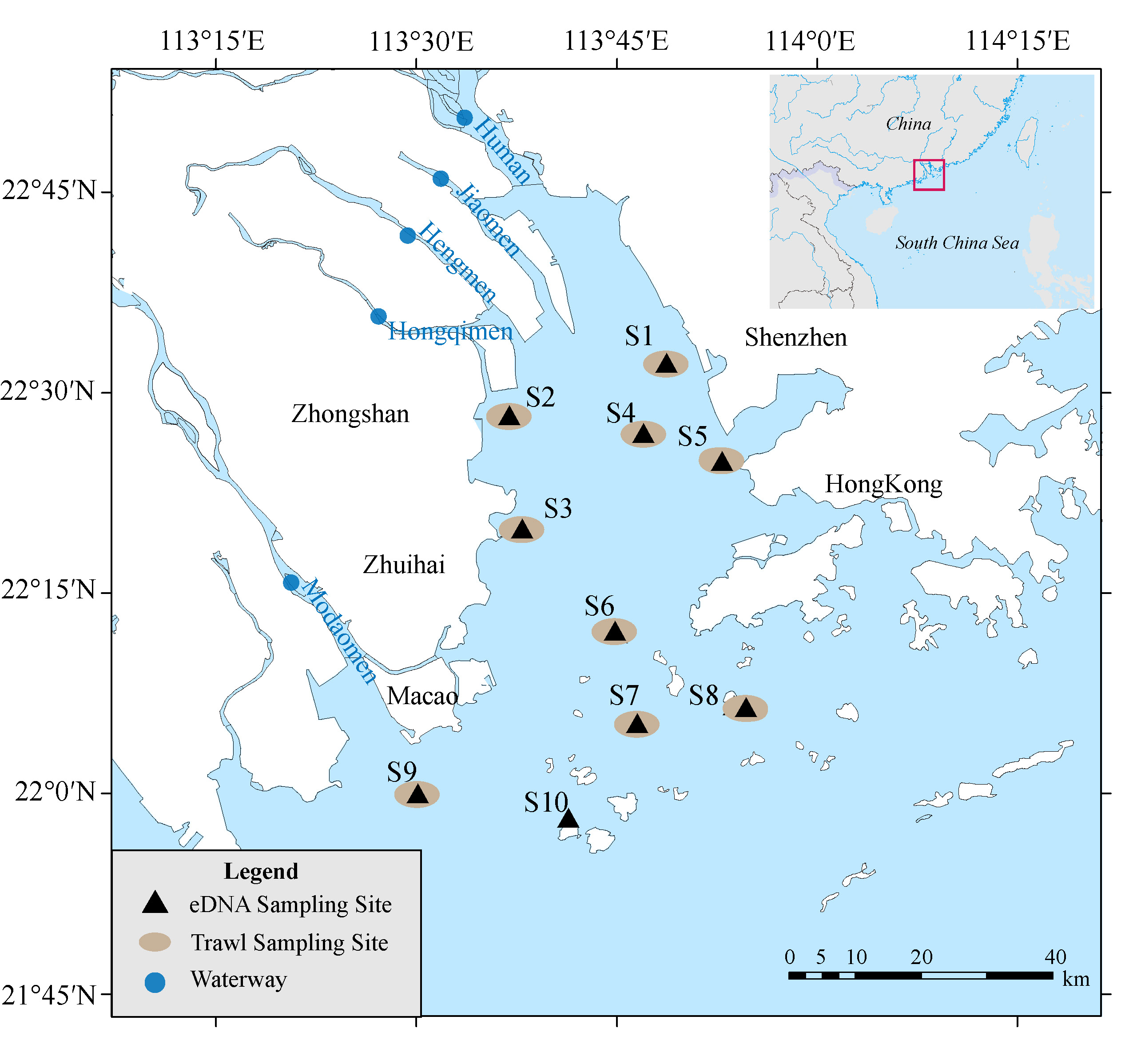 研究區域珠江口采樣位點示意圖