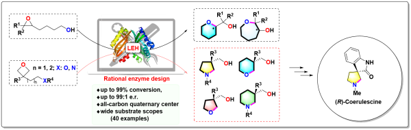 手性雜環化合物廣泛應用于合成化學、天然產物、醫藥、農藥與材料等領域,其中手性氮/氧雜環化合物是許多生物及生理活性分子的核心結構單元。目前關于手性氮/氧雜環化合物的合成主要涉及金屬催化與有機小分子催化,而近年來,通過計算設計與改造的生物催化方法已經成為研究的熱點。