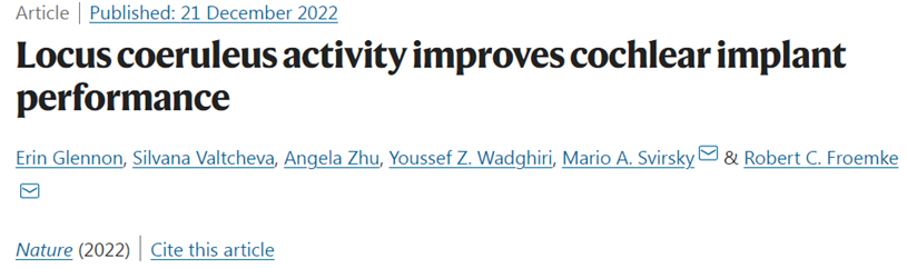1. Erin Glennon et al. Locus coeruleus activity improves cochlear implant performance. Nature, 2022, doi:10.1038/s41586-022-05554-8.