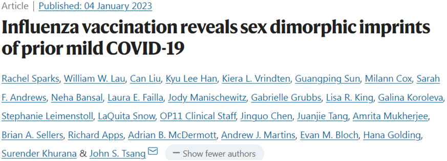 Rachel Sparks et al. Influenza vaccination reveals sex dimorphic imprints of prior mild COVID-19. Nature, 2023, doi:10.1038/s41586-022-05670-5.
