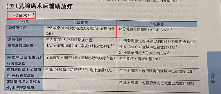 依據以上指南,該患者為導管原位癌,保乳術后且未育,建議行術后輔助放療,范圍包括左全乳+瘤床。