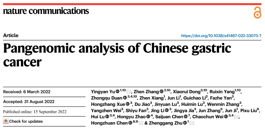 Yu, Y., Zhang, Z., Dong, X. et al. Pangenomic analysis of Chinese gastric cancer. Nat Commun 13, 5412 (2022). https://doi.org/10.1038/s41467-022-33073-7.