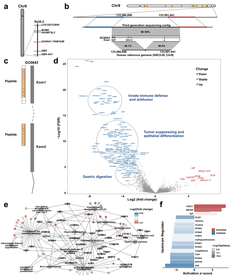 對那些人類參考基因組以外序列預(yù)測到的新基因,研究團隊利用三代測序的長讀長序列進行染色體定位研究,成功將新基因GC0643定位到9q34.2位點。
