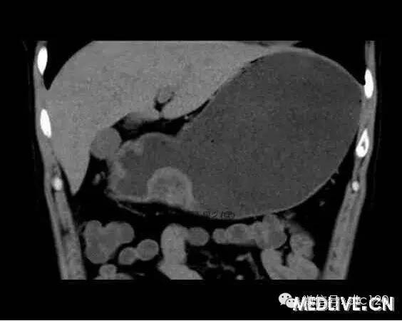 1、間質瘤是胃黏膜下最常見的腫瘤,多位于胃底、胃體,腫瘤較小時,邊緣清晰,較少出現壞死。較大者多出現囊變、壞死,密度不均勻,多呈中度以上強化。間質瘤生長方式多樣,外生多見。平滑肌瘤多位于胃賁門部,密度比較均勻,增強呈輕中度均勻強化。