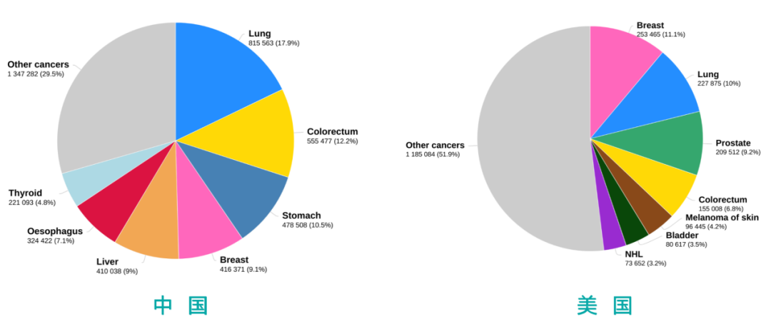 圖1.中國、美國主要癌種對比
