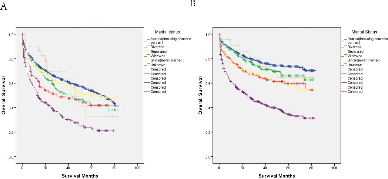 即使對于接受系統治療的早期GC患者,也很難準確預測GC預后。因此,結合治療后指標建立可靠的預測模型是有意義的。近年來,與前列腺癌、宮頸癌和直腸癌相關的婚姻狀況已成為一種創新的危險因素。但目前仍很少有研究關注社會因素對早期GC預后的影響。因此,本研究旨在結合臨床指標和社會因素,建立新的評分系統,為預測早期GC患者的總生存期(OS)提供依據。