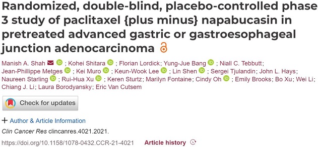 Clin Cancer Res:紫杉醇聯(lián)合Napabucasin治療晚期胃/胃食管交界癌