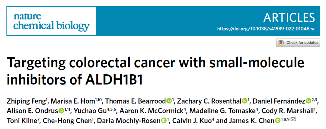Nature Chemical Biology:結(jié)直腸癌治療新靶點(diǎn)——ALDH1B1