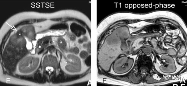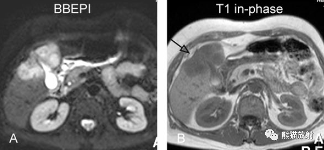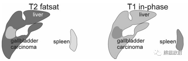 T1同相位(T1 in-phase):膽囊癌病變較肝臟為低信號;