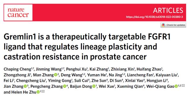 在上個月,上海瑞金醫院團隊還發現它與前列腺癌間的密切關系。研究結果發表在Nature Cancer 上,該研究揭示了分泌蛋白 Gremlin1 作為 FGFR1 的新型配體,通過 FGFR1/MAPK 信號通路調控腫瘤細胞可塑性、促進去勢抵抗性前列腺癌(CRPC)發生發展以及 Gremlin1 特異性抗體的應用治療研究。
