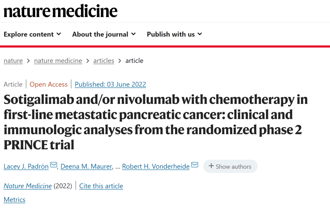 在正在舉辦的2022年美國臨床腫瘤學會年會(ASCO 2022)上,賓夕法尼亞大學和帕克癌癥免疫療法研究所為我們帶來了最新的胰腺癌免疫聯合進展:一項全國性的隨機臨床試驗中,免疫療法聯合化學療法,將胰腺癌的1年生存率提高了近65%!這項最新的研究也同步發表在國際頂級期刊《Nature Medicine》雜志上。