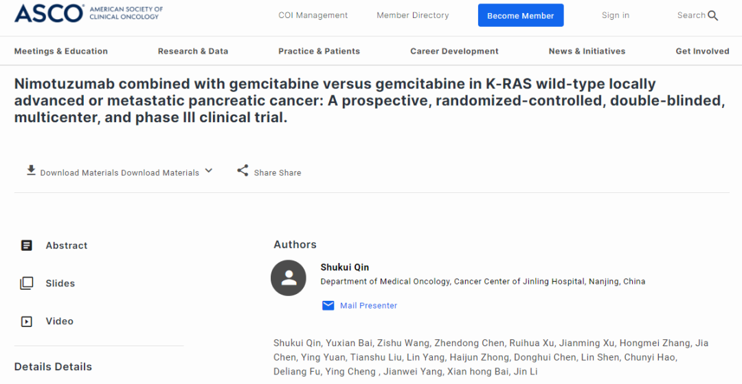 ASCO 2022:秦叔逵、李進教授發現尼妥珠單抗聯合吉西他濱可提高胰腺癌患者療效