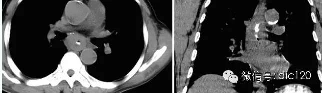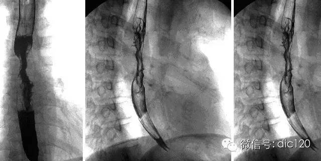 【影像表現】 CT:表現現為食管壁明顯增厚,管腔狹窄;食管與周圍結構分界不清食管吞鋇:食管中段充盈缺損,管腔不規則狹窄,管壁僵硬,粘膜糾集破壞,與正常食管壁分界清晰。